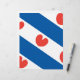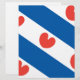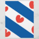 De vlag van Friesland, een provincie in Nederland. Het bestaat uit blauwe en witte diagonale strepen; in de witte strepen zijn rode pompblêden, bladeren van de gele waterlelie die één van de harten kunnen herinneren, maar volgens de officiële instructies "mogen niet hartvormig zijn".