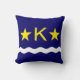Drog kussens met een ontwerp met vlag Kinshasa, hoofdstad van de Democratische Republiek Congo, blauwe vlag met witte golf, twee gouden sterren en letter K in het midden