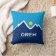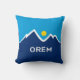 Kussen met een ontwerp met de vlag van Orem, Utah. Een blauwe, witte en gele vlag met bergtoppen en de zon in het midden