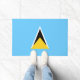 Dit ontwerp is voorzien van de nationale vlag van Saint Lucia, een soeverein eiland in de West-Indische wateren in het oostelijk deel van het Caribische Zee aan de grens met de Atlantische Oceaan. Het eiland heette vroeger Iyonola, de naam die de autochtone Arawaks aan het eiland gaven, en later Hewanorra, de naam die de inheemse Caribische bevolking, twee verschillende groepen van de Amerikanen, gaf. Saint Lucia maakt deel uit van de Lesser Antilles; zij ligt ten noorden en ten noordoosten van het eiland Saint Vincent, ten noordwesten van Barbados en ten zuiden van Martinique. De hoofdstad Saint Lucia is Castries. Andere grote steden zijn de Gros Islet, Soufrière en Vieux Fort. De vlag van Saint Lucia bestaat uit een ceruleaans blauw veld dat wordt geladen met een gele driehoek voor een zwarte-isosceldriehoek met witte randen; sinds 1967 is het de nationale vlag.