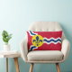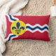Sierkussen met vlag van de stad St. Louis; rode vlag met witte en blauwe golven en blauwe vlooien in gele cirkel