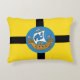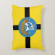 Kussen met een ontwerp met de vlag van Wellington City, Nieuw-Zeeland. Een gele vlag met een zwart kruis en het zegel van de stad met een afbeelding van een schip in het centrum