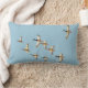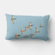Tien wilde eenden vliegen in formatie door een heldere blauwe hemel.