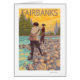 Women Fly Fishing - Fairbanks, Alaska - Vintage Travel Poster werd in 2007 opgericht. Dit afbeelding schildert beelden af van Fairbanks, AK.