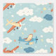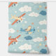Perfect voor een baby boy kinderkamer of jongensslaapkamer, dit behang heeft herhalende afbeeldingen propellervliegtuigen, wolken en sterren. De overheersende kleuren zijn roest sinaasappel, geel, wit en blauw op een bleke blauwe achtergrond. Schattig!