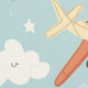 Vliegtuig Sterren en Cloud Pattern Baby kwekerij Behang