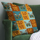 Leg je hoofd op dit Butterfly Love Pattern | Blauw & Oranje gradiënt Sierkussen. Een prachtig geometrisch patroon van vlindervierkanten afgewisseld met het woord: Liefde. Een geweldig cadeau-idee voor vlinderliefhebbers.