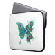 Artistiek getekende, fictieve, groene, gedetailleerde vlinder met groene, mooie, pauwenveren op witte achtergrond.