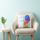 Verhelder de kamer met dit schattige kussen met een elektrisch blauwe vlinder die rust op een kersenrode paddenstoel.