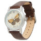 vlinderillustratie, goud en bruin horloge