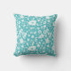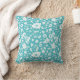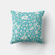 Wit bloemmotief met vlinders op een turquoise achtergrond.