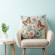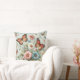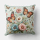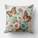 Dit is een kussen met worp met een lichtblauwe achtergrond. Het show vlinders en bloemontwerp.