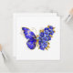 Juwelen, blauw, sapphire, mousserende flower butterfly met vleugels met blauwe, edelbloemen met goudbladeren op witte achtergrond.