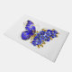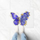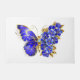 Juwelen, blauw, sapphire, mousserende flower butterfly met vleugels met blauwe, edelbloemen met goudbladeren op witte achtergrond.