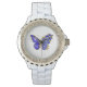 Juwelen, blauw, sapphire, mousserende flower butterfly met vleugels met blauwe, edelbloemen met goudbladeren op witte achtergrond.