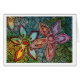 Kunst van Marta Harvey. Dit stuk werd gemaakt door een aardappelkarretje van een bloem te drukken op een geïnkt achtergrond. De rode bloem werd aan de bovenkant geïnkt en vastgelijmd en de achtergrond werd gevuld met pen en inktdraaiingen.