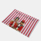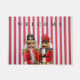 Twee kleurrijke nootmuskers op een rode en witte gestreepte achtergrond