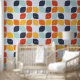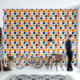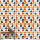 Dit moderne middeleeuwse patroon heeft oranje, blauwgroen en blauwgroen geometrische vormen.