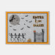 Geef je bezoekers een beetje een fright dit Halloween seizoen met deze Spooky Halloween deurmat. Er is een poort met een zwarte kat en een oranje pompoen bovenop de gate-pijlers. Er is een groep van vier skeletten die dansen, een heksilhouet die over de maan vliegt en veel vleermuizen die over vliegen. Achtergrond is lichtgrijs met witte spinwebben. Typografie staat "ENTER if you DARE!" en de punt op de i en de letter o in je zijn gemaakt van skeletkoppen! Er is een oranje grens met een zwarte streep om de rand.