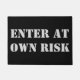 Vriendelijke deurmatten? Nee. We willen cynische deurmatten bij ons thuis... Doormat is verkrijgbaar in verschillende kleuren en is voorzien van de slogan "Enter at own risk", From the 'Cynical Doormats' lijn van Mindgoop