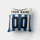 Gemakkelijk te bewerken football shirt / voetbal jersey ontwerp gooi kussen. De strepen zijn blauw en de achtergrondkleur kan veranderd worden, klik op 'AANPASSEN'. Gebruik gewoon de vakken rechts van het afbeelding om uw eigen naam en nummer in te voegen. Veel meer kleuren en design beschikbaar in mijn winkel. Perfect cadeau voor elke voetballer of fan.
