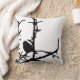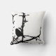 Deze hedendaagse kunstworp werpt een kussen met een zwart-wit modern abstract patroon van een donkere, donkere Junco (Junco hyemalis), die op een kale tak hoog in een boom staat. Deze vogel is eigenlijk een soort kleine, grijze en witte mus.