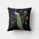 vrouwelijke en delicate geborduurde pauzes met dainty roze bloemen en groene bladeren op een zwarte achtergrond. prachtige blauwe pauw met een grote turkooiskleurige staart op een tak met een baby pauw en omringd door mooie roze daisies . meerkleurige borduurwerk.