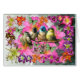 Digitale kunstfoto: collage van dagbloei, gekleurde glazen moten en vogels. De binnenkant van de titel luidt: Vogels van een vader, bedankt dat je mijn vriend bent!