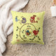Birds of a Feather kussen beschikt over een folkart stijl ontwerp met vogels van verschillende kleuren, een wervelende tak met bladeren, en rode wervelharten.
