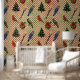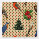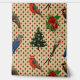 vogeltjes brengen een kerstsfeer wanneer ze gekoppeld zijn aan kerstbomen en rode en groene diamanten op een sepia-achtergrond. De vogels zijn vleugels, blauwvogels en vliegenvangers.
