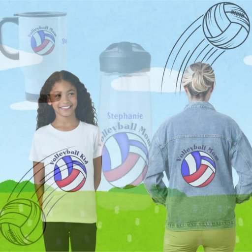De volleybaltekst van de mama kromde rond een rood, wit en blauw volleybal. Mam's naam is in het midden net koningsblauw. Goed geschenk voor Moederdag.