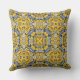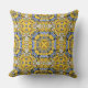 Kussens met een caleidoscoop-thema. Reflectie. Harmonie en balans in geel met een vleugje blauw.