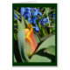 Een ontvlambare rode/gele tulp met blauwe bloemen