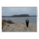 Witte haren man op het strand begin december, uitkijkend naar zee.