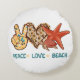 Vrede, liefde, strand | Hand-vrede, hart, schildpa Rond Kussen