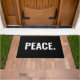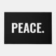 Vrede zwart-wit tekst minimalistische anti-oorlog deur mat / tapijt. Aangepaste witte tekst op zwarte achtergrond.