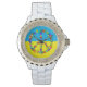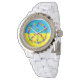Vredesbord met bloemen, oekraïense vlag, wat horloge