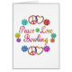 Een bowlingminnaar kan hun liefde shows met deze leuke bloemen, een vredesteken en een hart, en de woorden - Peace Love Bowling. Maakt een groot geschenk voor een bowler.