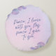 Breng rust en sereniteit in uw huis met dit prachtig ontworpen kussen met een inspirerend citaat: "Vrede, ik vertrek met u; mijn rust geef ik aan u." Omgeven door zachte paarse waterverf bloemen en een delicate gradiëntachtergrond, is dit kussenontwerp ideaal voor het bevorderen van een rustige en opbeurende sfeer. Ideaal voor slaapkamers, gebedsruimtes of als een attent geschenk voor geliefden.