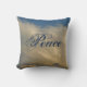 Een mooie blauwe hemel en witte wolkenfoto staat op deze gooiende kussen en wordt gecomplimenteerd door het woord vrede dat op deze kussen lijkt te zijn gecentreerd. De stevige donkerblauwe kleur op de rug van deze kussen kan worden veranderd en er is genoeg ruimte om tekst of foto toe te voegen aangezien u wenst.