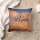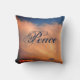 Een prachtige blauwe hemel en roze wolkenfoto staat op deze gooiende kussen en wordt gecomplimenteerd door het woord vrede dat op deze kussen lijkt te zijn gecentreerd. De stevige donkerblauwe kleur op de rug van deze kussen kan worden veranderd en er is genoeg ruimte om tekst of foto toe te voegen aangezien u wenst.