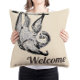 vriendelijke sloth - "welkomsttekst" - het mooie grafische afbeelding uit een antiek boek werd bewerkt en toegepast op deze 16x16-werpkussen van Alma Wad . Voor- en achterontwerp. U kunt de tekst wijzigen / u kunt een andere kleur kiezen voor de achtergrond. Geweldig thuis, kinder kamers, café, wachtkamers.