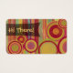 Dit visitekaartje is verlaten opzettelijk op de rug leeg. Het kenmerkt een verfijnd palet van rood, golds, greens, blauw, en sinaasappel… zelfs sommige poppen van donkerroze. Maar die verfijning is een perfect saldo aan de capricieuze, originele geweven, genestelde cirkels en de strepen van ongelijke breedten. Een gedeeltelijk-ondoorzichtig zwart kenteken gluurt binnen van de linkerzijde zoals een kleine vlag waarover de woorden "hallo daar!" zijn teruggegeven in een even vriendschappelijke doopvont. Het kleurrijke ontwerp kan rond worden bewogen worden geroteerd of resized als u een beetje van controle over de uiteindelijke blik van deze kaarten zou willen hebben. Eveneens, verander uw doopvont en tekstkleuren als u dit wenst. ///als u dit ontwerp als daadwerkelijk visitekaartje zou willen gebruiken, eerder dan zo het verlaten van het spatie voor gelukkige, vriendschappelijke nota's gelieve te schrijven over de rug voor vrienden en gehouden van degenen (evenals vreemdelingen!). Voeg enkel uw details op de rug in plaats van het verlaten van het spatie en voila toe: een gelukkig klein visitekaartje voor u!