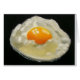 Een realistisch gefrituurd ei, geschilderd in olie, op een zwarte achtergrond.