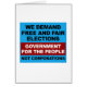 Wij eisen vrije en eerlijke verkiezingen. Regering voor het volk, geen bedrijven! Eind de duitse droging. End Citizens United. Steun de Stemrechtwet!