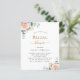 Een chique witte achtergrond. Versierd met een rozen gouden en blozend roze bloemblaadjes, rozen bloemen en groene watergekleurde eucalyptusbladeren, takjes, groen en faux gouden takjes. Personaliseer en voeg de naam van de bruid toe om te zijn en feestdetails. Zwarte en goudkleurige letters. Achterkant: roos gouden achtergrond kleur. 1 vel = 1 uitnodiging afgedrukt rand tot rand.