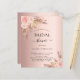 Voor een modern boho-vrijgezellenfeest. Een roos gouden faux metallische achtergrond. Gedecormeerd met roos goud en roze floralen, rozen en pamapgras. Pas een naam en partijdetails aan en voeg deze toe.