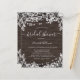 Deze begrotingsuitnodiging voor Robuuste Wooden Bridal-douche bevat witte strijklichten, wit bloempatroon op de donkere houten achtergrond. De achterkant van deze uitnodiging is een houten wit bloempatroon. Pas het aan en geniet ervan. Houd er rekening mee dat enveloppen NIET bij dit ontwerp zijn inbegrepen. Als je enveloppen nodig hebt, controleer je collectie of koop je deze los van de markt.