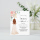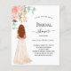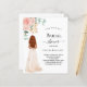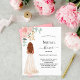 Een witte achtergrond. Een bruid, roze rozen en eucalyptus groen. Personaliseer en voeg een naam en feestdetails toe. 1 vel = 1 uitnodiging afgedrukt rand tot rand.
