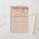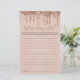 Een leuk feestspel voor je Vrijgezellenfeest met dit roos gouden glitter drip design. Uw gasten zullen hun favoriete geheugen met de bruid opschrijven om te zijn wie het dan zal uitlezen en iedereen gissen wie het is. De jouw namen en de datum worden subtiel getint op de achtergrond, bedekt met lijnen waarop uw invitees hun anekdotes kunnen schrijven. Van wie geheugen dit in een geplaatst elegant manuscript is, en de rest van de tekst u kunt gemakkelijk personaliseren.
